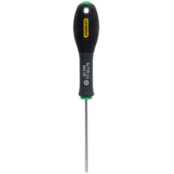 STANLEY FatMax schroevendraaier TORX 0-65-340 heeft een tip geschikt voor schroeven TT10 en een kling van 75mm lengte. De stalen kling is van zeer hoge kwaliteit wat zorgt voor een hoge weerstand en een geringe kans op afbraak van de tip. De handgreep is rechtstreeks op de kling gevormd, waardoor hij nagenoeg onbreekbaar is. De handgreep is smal van voor zodat je snel kunt schroeven en loopt breed uit zodat je ook veel kracht kunt zetten. Het handvat is voorzien van speciale anti-slip rubber waardoor je altijd maximale grip hebt.
