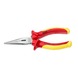 Met de gebogen Stanley telefoontang VDE (0-84-008) kunt u veilig en eenvoudig telefoondraden bewerken. De handgreep van de tang is 1000 Volt gecertificeerd en is getest tot 10.000 Volt zodat u altijd veilig kunt werken. De handgreep bestaat uit twee verschillende materialen en vingerbeveiliging voor meer comfort en precisie. De kop van de tang is gemaakt van roestvrij chroom waardoor hij makkelijk schoon te maken is en lang meegaat. De tang is conform DIN-normen, is 200mm lang en weegt 188gram.