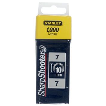 STANLEY kabelkrammen 1-CT106T hebben een ronde bovenkant en zijn ideaal voor het bevestigen kabels, ijzerdraad, gaas, etc. Ze zijn gegalvaniseerd, dus bestand tegen corrosie. Breedte: 8mm. Hoogte: 10mm. TYPE 7. Inhoud: 1.000 stuks.