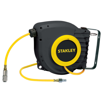 De Stanley luchtslanghaspel heeft een bevestigingspunt waarmee je deze aan de muur kan ophangen. Sluit de PVC luchtslang aan op je compressor en je pneumatische gereedschap. De luchtslang heeft een werkdruk van 12 bar.