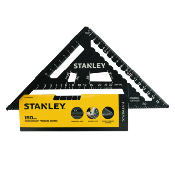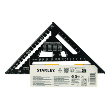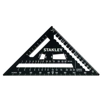 STANLEY bouwdriehoek STHT46101-0 is een zeer veelzijdige hulp bij al je projecten. Een zijde is voorzien van een extra dik profiel, zodat je het kunt gebruiken als zaaggeleider. Met 90° gradenboog met schaalverdeling per 1 graad voor het eenvoudig meten van hoeken. Maatvoering voor standaardhoeken van dakspanten voor het gemakkelijk en snel aftekenen van hoeken. Voorzien van diverse uitsparingen om je potlood op z'n plaats te houden, zodat je perfecte lijnen kunt trekken over de gehele lengte van een plank. Met pivoteerpunt voor gebruik als gradenboog. Door z'n afmeting past het makkelijk in je gereedschapskist. Materiaal: aluminium. Lengte: 180mm