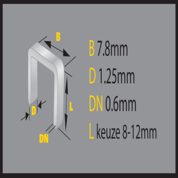 TANLEY krammen 1-CT306T zijn ideaal voor het bevestigen kabels, ijzerdraad, gaas, etc. Ze zijn gegalvaniseerd, dus bestand tegen corrosie. Hoogte: 10mm. TYPE CT. Inhoud: 1.000 stuks.