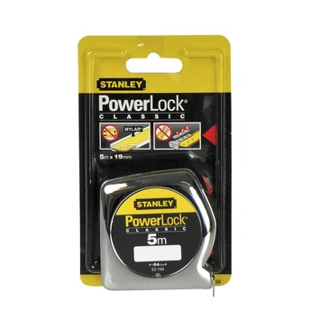 De Stanley Powerlock rolmaat 0-33-194 is een praktische rolbandmaat met een extra zwaar uitgevoerde metalen meetlint van 5 meter lang en 19 millimeter breed. Het meetlint is duidelijk afleesbaar en kan tijdens het meten worden vergrendeld. Na meting rolt het meetlint soepel op.