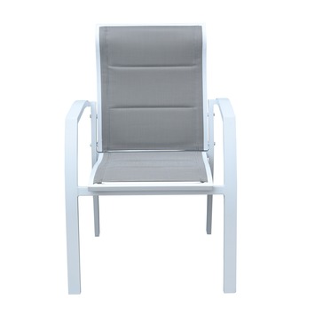 De stoel Barcelona wit is een mooie stoel licht van gewicht en oersterk. Het frame is gemaakt van aluminium en het zit- en ruggedeelte is gemaakt van textileen wat erg makkelijk in het onderhoud is. De stoel Barcelona heeft verder als voordeel dat hij stapelbaar is. De kleur van de stoel is wit.