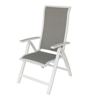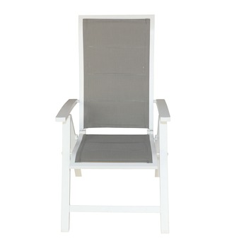 De standenstoel Barcelona wit is een mooie stoel gemaakt van aluminium. Het ruggedeelte van de stoel is verstelbaar in 6 standen. De stoel is licht van gewicht en oersterk. Het zit en ruggedeelte is gemaakt van textileen wat erg makkelijk in het onderhoud is. De kleur van de stoel is wit.