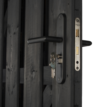 Deze Starx tuinpoortsluiting is een complete set met buitendeurbeslag waarmee je jouw tuinpoort veilig kunt afsluiten. Deze set bestaat uit een degelijk insteekslot met bijbehorende sluitkom en sluitplaat. Het deurschild is afgewerkt met een zwarte poedercoating wat zorgt voor een moderne uitstraling. De set is geschikt voor zowel linksdraaiende als rechtsdraaiende deuren. Deze set is voorzien van het SKG 1-sterren keurmerk wat garandeert dat de set voldoende inbraakwerend is. Hierdoor kun je deze set niet alleen gebruiken voor een tuinpoort maar bijvoorbeeld ook voor een schuurdeur of berging. De slotkast van het insteekslot is 78x115 mm en de voorplaat is 174x20 mm. Bij deze set is de bijbehorende profielcilinder niet meegeleverd, die moet je er dus zelf nog los bijkopen. Het voordeel hiervan is dat je kunt kiezen voor een standaard universele profielcilinder, maar je ook op basis van bijvoorbeeld jouw huidige sleutel van de achterdeur of schuurdeur een cilinder bij kunt laten maken. Als je daarvoor kiest kun je de poort open met dezelfde sleutel. Zowel standaard cilinders als maatwerk cilinders kun je bestellen bij KARWEI.