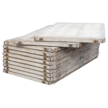 Een steenschot is afkomstig uit ambachtelijke steenfabrieken. Hier zijn de steenschotten gebruikt om stenen die net zijn gebakken af te koelen en te laten drogen. Hierdoor hebben steenschotten een industriële uitstraling. Je kunt het steenschot gebruiken voor allerlei decoratieve toepassingen zoals het maken van meubels, als rijplaat, afrastering in de tuin of als vloerdeel. De steenschotten kun je ook buiten gebruiken. De afmeting van het steenschot is ca. 75x124 cm en de dikte is ongeveer 45 mm.