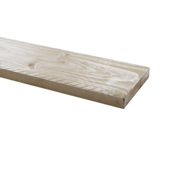 Dit geborstelde steigerhout is speciaal gedroogd om de werking van het hout te verminderen. De afwerking van het hout is glad en hierdoor is schuren niet meer nodig. Steigerhout is ideaal voor het maken van bijvoorbeeld stoelen, tafels, banken en kasten. De kopmaat van het hout is ca. 32x200 mm en de lengte is ca. 250 cm. Deze plank is voorzien van een zandkleurige afwerklaag.