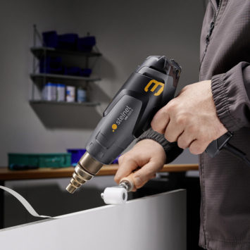 De HeatMatic 2020 E wordt elektronisch geregeld en is perfect voor grote projecten. Met een vermogen van 2200 W kan hij via het display worden ingesteld van 80 tot 630 C. Geleverd in een koffer.