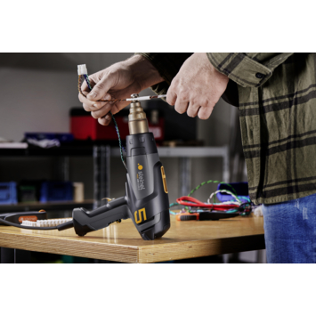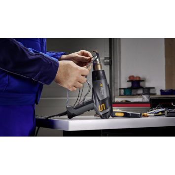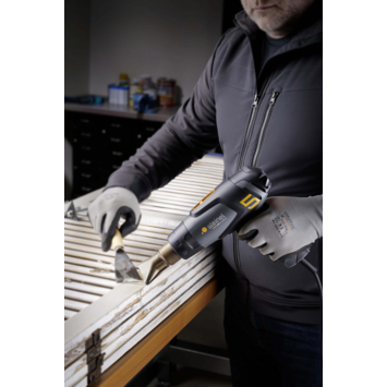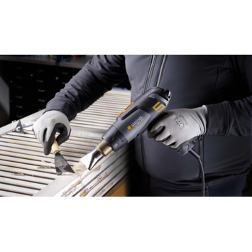 De Steinel HM 2120 E heteluchtpistool is een krachtig en professioneel heteluchtpistool voor veeleisende klussen. Je stelt de temperatuur eenvoudig met één hand in op negen standen tussen 80 en 630°C. Met drie luchtstanden tot 500 l/min werk je nauwkeurig op verschillende materialen. Ideaal voor het verwijderen van verf, het bewerken van kunststof of het losmaken van lijm. Dankzij het keramisch verwarmingselement blijft de warmte stabiel. De 2,2 meter lange kabel zorgt voor extra bewegingsvrijheid. Wordt geleverd in een opvouwbare doos.