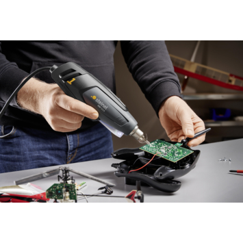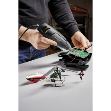 De Steinel heteluchtpistool HM Stick is een compacte en krachtige oplossing voor fijne klusjes in huis. Ideaal voor het bewerken van 3D-printonderdelen, het krimpen van kabels of het losmaken van kleine soldeerpunten. Dankzij de temperatuur tot 500°C en een luchtvolume van 100 l/min werk je gericht en gecontroleerd. Het apparaat ligt goed in de hand, en met de 2,2 meter lange kabel beweeg je soepel mee met je werk. De geïntegreerde LED-lamp zorgt voor goed zicht. Wordt geleverd met meerdere mondstukken, klaar voor elke klus.