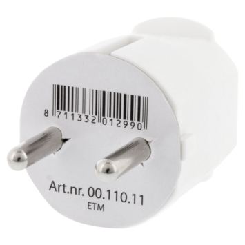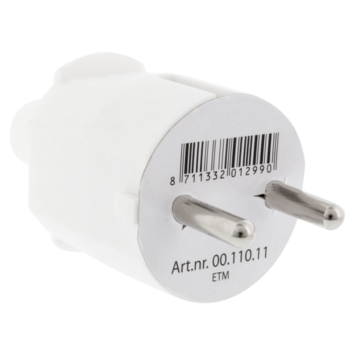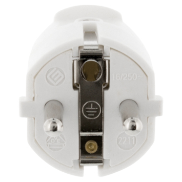 Stekker met randaarde pvc wit, voor montage op een elektriciteitssnoer. Maximale aansluitwaarde van 16 ampère.