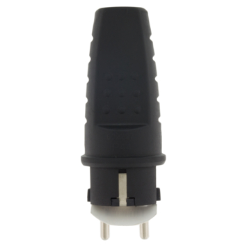 Deze stekker is gemaakt van rubber en is 2-polig. De stekker is geaard en valt onder beschermingsklasse IP44. Deze is hiermee spatwaterdicht en geschikt voor buitengebruik.