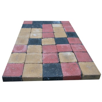 Met de stenen getrommeld geel, rood en zwart 15x15x4 cm kun je een kleurrijk natuurlijk nostalgisch terras en/of tuinpad aanleggen. Deze gele, rode en zwarte stenen van zowel 15 centimeter lang als breed en 4 centimeter dik, zijn eventueel te combineren met stenen in andere kleuren en formaten. Voor het aanleggen van een oprit zijn deze stenen met een dikte van 4 centimeter niet geschikt; hiervoor wordt tenminste 6 centimeter dikke stenen geadviseerd.