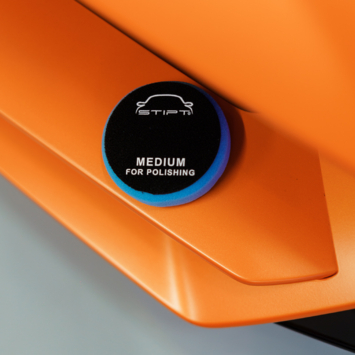 1. Bevestig de Stipt Mini Polish Pad Medium stevig op de Stipt Mini Dual Action Polisher.