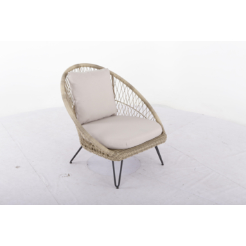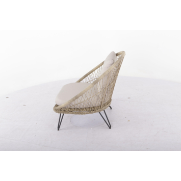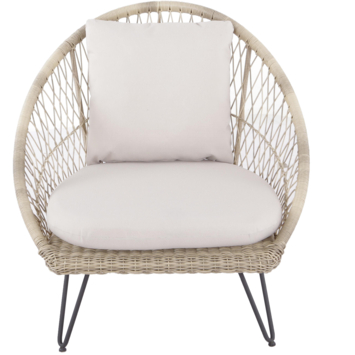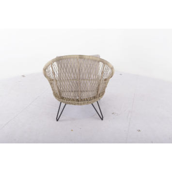 mooie stoel, best groot. rotan kleur en zandkleurige kussens