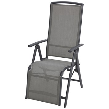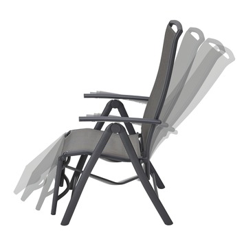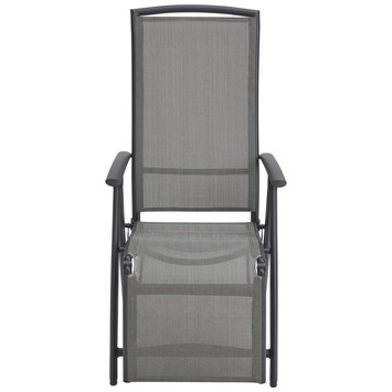 De stoel Bilbao antraciet met voetensteun antraciet is een praktische en comfortabele verstelbare relaxstoel. De antracietkleurige stoel is gemaakt van metaal en textileen. Deze lichtgewicht en stevige stoel is voorzien van een voetensteun en is in 7 verschillende standen te verstellen. Als je de stoel verstelt in de door jouw gewenste positie, dan gaat de voetensteun automatisch omhoog; zo zit je heerlijk ontspannen in een comfortabele houding. De stoel is inklapbaar, waardoor opbergen van de stoelen minder ruimte in beslag neemt. De tuinstoel Bilbao met voetensteun is uitstekend te combineren met andere meubelen uit de Bilbao-serie.