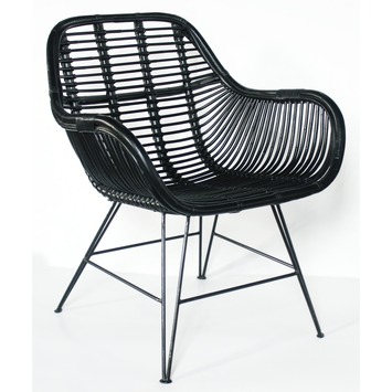 Stoel Joris zwart is een relaxed ogende stoel met metaal onderstel. Het is een uitstekende stoel om in de tuin of op het terras te zetten. Het gebruikte rotan materiaal geeft de stoel een natuurlijke uitstraling. Met een kussentje uit het KARWEI assortiment geef je stoel een extra stijldimensie. Stoel Joris rattan/ijzer zwart is 87 centimeter hoog, 64 centimeter breed en 64 centimeter diep. Als rotan lang nat blijft dan kan het gaan oprekken. Het advies is om de rotan meubelen af te dekken bij regenval.