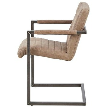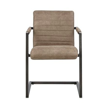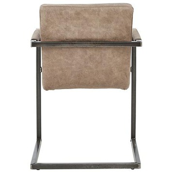 Een stoere lederen eetkamerstoel met een industrieel vierkant metalen buisframe en grove lasnaden. De lederen zitting en rugleuning krijgen met hun horizontale stiksel een robuuste uitstraling. De stoel Long Island is bekleed met oersterk taupekleurig geborsteld pilotenleder (rundsleder) dat iets ruw aanvoelt. Het taupekleurige leder in combinatie met het robuuste vierkant metalen buisframe maken van deze stoel een opvallende verschijning in elk interieur. De Long Island eetkamerstoel vormt een perfecte combinatie met de stoere teakhouten eettafel Karlijn. De eetkamerstoel Long Island heeft de afmetingen (bxdxh): 56x60x85,5 cm. De armleuninghoogte van af de vloer is 66,5 cm. De zitdiepte is 45cm en de zitbreedte is 48 cm. De zithoogte, verloopt van voor naar achter,van 47,5 cm naar 46 cm en de rughoogte is 42 cm. Een eetkamerstoel van hoge kwaliteit met een heerlijk zitcomfort. Een stoel waarop lekker lang tafelen en genot is. Deze lederen stoel is ook verkrijgbaar in de kleur cognac. Onderhoudsadvies geborsteld rundsleder: Dit rundsleder heeft in de leerlooierij een lichte vlekwerende behandeling gekregen. Het advies is om 2 maal per jaar na te behandelen met een geschikte vloeistofvlekwerende leercoating. Wekelijks stof afnemen met een stofzuiger die voorzien is van een meubelborstel. Om de uitstraling en structuur van dit leder te behouden wordt het gebruik van ledercrèmes- en vet- of oliehoudende onderhoudsmiddelen sterk afgeraden. Door de natuurlijke eigenschappen en wijze van looien kunnen geringe kleurafwijkingen optreden alsmede littekens zichtbaar zijn. Een verzorgend en vlekbeschermend onderhoudsproduct met UV filter in 220ml spuitflacon is via de bouwmarkt verkrijgbaar. 3 jaar garantie conform het CBW, eerste jaar volledige vergoeding van de reparatie.