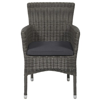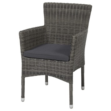 De stoel Stockholm grijs is een stapelbare wicker stoel. De stoel is gemaakt van grijs kunststof wicker waardoor hij makkelijk reinigbaar is. De stoel heeft een frame welke is gemaakt van staal. De stoel heeft een kussentje. De stoel heeft een rugleuning die iets achterover helt waardoor de stoel lekker comfortabel zit. Stoel Brievengat grijs is 86 centimeter hoog, 60 centimeter breed en 63 centimeter diep.