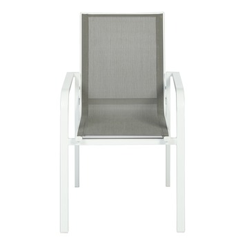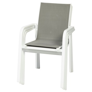 De stoel Valencia wit is een mooie stoel gemaakt van aluminium. De stoel is licht van gewicht en oersterk. Het zit en ruggedeelte is gemaakt van textileen wat erg makkelijk in het onderhoud is. De stoel Valencia heeft verder als voordeel dat hij stapelbaar is. De kleur van de stoel is wit.