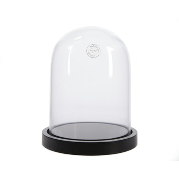 Stolp glas houten bord zwart Ø18x26 cm is een woonaccessoire die niet kan ontbreken in een interieur. Gebruik de stolp bijvoorbeeld om een foto, een woonaccessoire of een beeldje onder te plaatsen. Met deze stolp van glas en houten bord zet je jouw persoonlijke items net iets meer in de spotlight. Stolp glas houten bord zwart Ø18x26 cm heeft een diameter van 18 centimeter en is 26 centimeter hoog.