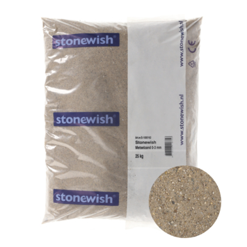 Het 25 kg Stonewish Metselzand 0-3 mm is de perfecte keuze voor het maken van metselmortel en metselspecie. Dankzij de hoekige zandkorrels zorgt dit zand voor een sterke binding, wat essentieel is bij het bouwen van muren en funderingen. Het zand heeft een korrelgrootte van 0 tot 3 mm en komt uit bovenstroomse delen van regionale rivieren. Het is grof van structuur en zorgt voor een stevige basis in je metselwerk. Dit metselzand wordt geleverd in een handige zak van 25 kg of een grotere bigbag van 1000 kg.