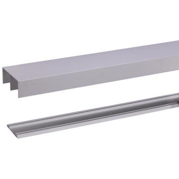 Boven- en onderrail voor het maken van je rollende schuifdeuren. Deze rail van StoreMax combineer je met StoreMax deursets R-40 of R-60. Met een lengte van 180cm is deze rail geschikt voor 2 deuren. Dit type rail is ook beschikbaar in lengte 240cm (3deuren) en 360cm (4deuren) en in de kleur wit i.p.v. aluminium. Bevestig de rail met de schuine kapclip van StoreMax bij het plaatsen van deuren onder een schuin dak.