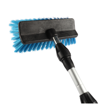 Stevige materialen zijn belangrijk, door de harde haren is deze wasborstel namelijk geschikt voor intensieve schoonmaakklussen. Je gebruikt hem bijvoorbeeld voor het schoonborstelen van je terras. Let wel op dat de tegels van het terras dan geschikt zijn om behandeld te worden met hardere borstelharen. Ook kun je scheepsdekken grondig reinigen met behulp van deze harde borstelharen. Tuinpaden en opritten kun je ook eenvoudig schoonborstelen met deze wasborstel. Vaak is het dan aan te raden om de telescopische steel niet helemaal uit te schuiven. Zo zet je makkelijker kracht en werk je met meer controle.