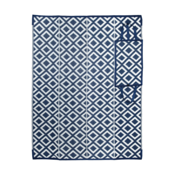 Strandmat opvouwbaar in tas 150x200 cm blauw wit geblokt