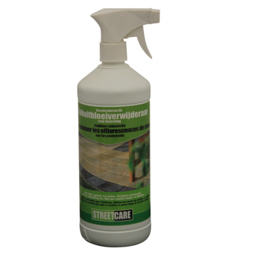 Streetcare kalkuitbloeiverwijderaar voor het verwijderen van cementsluiers, beton- en mortelresten, enz. Kalkuitbloeiverwijderaar is zeer actief, zelfwerkend speciaal reinigingsmiddel voor o.a. roest- en kalkafzetting, verwering en ander hardnekkig vuil. Bij voorkeur buiten te gebruiken.