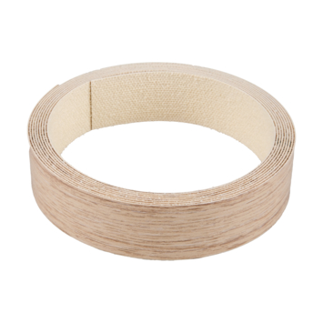 Strijkband naturel eiken biedt de mogelijkheid om de onafgewerkte zijkanten en randen van meubelpanelen af te werken met de gewenste kleur.