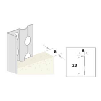 Omdat dit profiel bedoeld is voor een stuclaag van 6 mm sluit het goed aan op dikkere pleisterlagen. De vorm geeft een vaste rand waar je tijdens het werken makkelijk langs kunt smeren. De lengte van 260 cm zorgt ervoor dat je lange stukken muur in één keer kunt meenemen zonder onderbreking. Zo blijft het overzichtelijk en hou je controle over de overgang tussen het stucwerk en de rest van de wand.