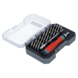 Deze 30-delige preciesie- bitset van hoogwaardig Chroom-Vanadiumstaal bevat behalve de bits ook een handige schroevendraaier met ratel met magnetische bitopname en een verlengstuk van 100mm. Deze set is bijzonder geschikt voor schroefverbindingen op elektronische componenten en apparaten en hebben een opnamemaat van 4mm. De set in de overzichtelijke cassette voorziet in de meest gebruikelijke bitmaten; SL 1,0-1,5-2,0-2,5-3,0-3,5 mm; PH 000-00-0-1; PZ 000-00-0-1; HEX 0,9-1,3-1,5-2,0-2,5-3,0; T 4-5-6-7-8-9-10-15