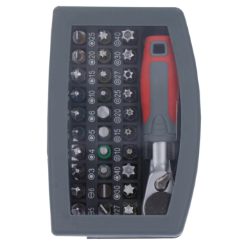 Deze 32-delige bitset van hoge professionele kwaliteit gehard S2-staal bevat behalve de bits ook een handige ratel en magnetische bithouder. Het handige kleurcodesysteem zorgt voor een snelle herkenning van de bitsoort. De set in de overzichtelijke cassette voorziet in de meest gebruikelijke bitmaten; SL 3-4-5-6 mm; T 10-15-20-25-27-30-40; T-tamper (met gat) 10-15-20-25-27-30-40; PH 1-2-2-3; PZ 1-2-2-3; HEX 3-4-5-6