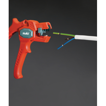 Met de suki-afstriptang die automatisch werkt, stript u eenvoudig elektrakabels met afmetingen van 0,2mm2 tot 6mm2. De afstriptang is instelbaar waardoor de tang een instelbare afstriplengte van 5mm tot 15mm heeft. Daarnaast is de automatische afstriptang voorzien van een knipfunctie waarmee het mogelijk is om met de striptang kabels met een maximale dikte van 6 mm door te knippen. Kortom, de automatische afstriptang is onmisbaar gereedschap bij het strippen van elektrakabels.