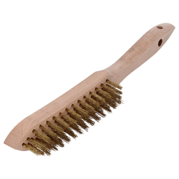 Deze suki-draadborstel met 4 rijen draden van messing is ideaal voor het reinigen van kwetsbare materialen. De zachte messing draden beschadigen het te borstelen materiaal namelijk niet. Zo is de draadborstel bijvoorbeeld te gebruiken voor het uitborstelen van houtnerven. Het hout beschadigt niet. Bovendien geeft de draadborstel ook geen vlekken op het hout, zoals een staalborstel wel doet. Zoekt u een andere draadborstel dan deze draadborstel met 4 rijen messing? Bekijk suki’s assortiment aan borstels.
