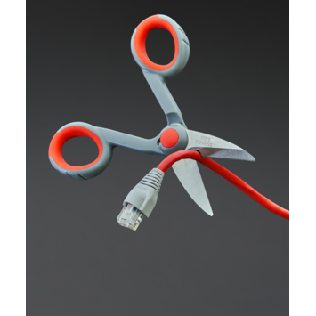 Deze robuuste rechte suki elektroschaar is zeer geschikt voor het strippen en knippen van snoeren en dunne kabels. Door de korte snijvlakken kan met grote kracht worden geknipt. Door het extra snijvlak kan er eenvoudig mee afgestript worden. Er is ook een gebogen suki elektroschaar.
