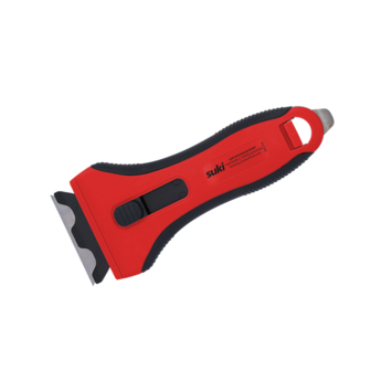 De robuuste suki glasschraper met een ergonomische handgreep reinigt u heel handig glas of ander hard materiaal. In het handvat is in de mesjesdispenser ruimte voor maximaal 6 trapeziumvormige mesjes van 61mm en de schraper heeft een automatische-doorlaadfunctie met 3 extra mesjes van 61mm. Het mesje kan worden uitgeschoven via een vergrendeling en het gebruikte mesje kan zonder gereedschap worden verwijderd door het verder uit te schuiven. Aan de achterkant bevindt zich een handige verfblikopenener dat ook als schrapertje gebruikt kan worden.
