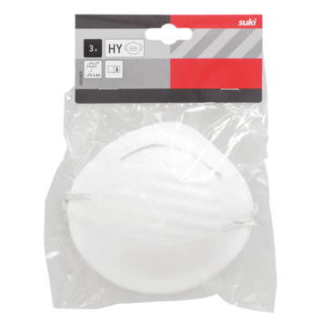 Tijdens het klussen beschermt het suki hygiënemasker u tegen hinderlijk stof dat niet schadelijk is voor de gezondheid. Het masker is namelijk geen veiligheidsuitrusting en beschermt daarom niet tegen schadelijke stoffen. Wel werkt u een stuk hygiënischer, omdat het hygiënemasker mond en neus bedekt. U bevestigt het masker met metalen neusvorm met behulp van een draagelastiek. De maskers zijn verpakt per 3 stuks. Het hygiënemasker van suki is ook beschikbaar in een verpakking van 10 stuks.