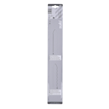 Het suki isolatiemes met een speciaal lemet voor het snijden van diverse isolatiematerialen, zoals steenwol, glaswol en piepschuim. Het 425 millimeter lange isolatiemes heeft een roestvaststalen lemmet van 275 millimeter met 2 soorten vertandingen, stevig bevestigd aan een robuuste kunststof greep.