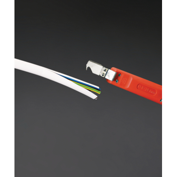 Met het suki-kabelmes stript u moeiteloos geïsoleerde elektrakabels. Het mesje is verstelbaar. U stelt het mesje af op de dikte van de kabelisolatie van de te strippen elektrakabel. Het suki kabelmes is tevens voorzien van een haakmes dat is bevestigd aan het kabelmes. Hiermee verwijdert u de isolatie. Kortom, het strippen van elektrakabels gaat makkelijk en snel met behulp van dit kabelmes welke geschikt is voor professioneel gebruik. In het handvat is een vervangmesje meegeleverd.