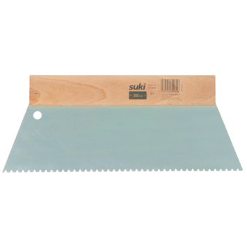 Deze suki lijmkam meet 3mm bij 300mm. Dat wil zeggen dat de lijmkam 3mm brede tanden heeft en een totale breedte van 300mm. Hierdoor is de lijmkam geschikt voor het aanbrengen en verdelen van verschillende bouwlijmen en pastalijmen. U gebruikt de lijmkam van 3mmx300mm voor tegelwerk. Naast de lijmkam met 3mm tanden en een breedte van 300mm heeft suki ook lijmkammen met tandbreedtes van 4mm en 6mm of lijmkammen met een totale breedte van 180mm. Bekijk het assortiment.