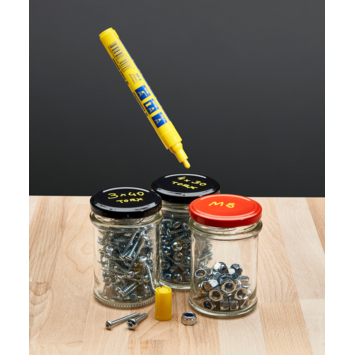 Deze suki viltstift, ook wel markeerstift, merkstift of permanente marker genoemd, is zeer geschikt voor het markeren van zowel gladde als ruwe materialen. Deze watervaste markeerstift, met de sterk dekkende schrijfkleur geel, is voorzien van een ronde schrijfpunt van 4 millimeter.