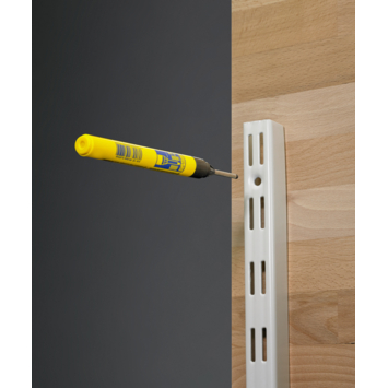Deze suki viltstift, ook wel markeerstift, merkstift of permanente marker genoemd, is extra geschikt voor het markeren door een boorgat. De extra dunne punt van 1 mm met een lengte van 25 mm past in de meeste boorgaten om het achterliggende materiaal te markeren. Deze watervaste markeerstift heeft de schrijfkleur zwart.