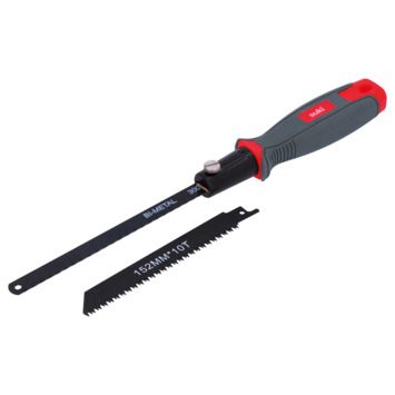 De suki metaalzaaghouder is een handzame multifunctionele zaag voor het zagen van pvc, acryl en hout. Door het ontbreken van een zaagbeugel is het mogelijk ook op moeilijk bereikbare plaatsen te zagen. De suki metaalzaaghouder inclusief zaagblad van 300 millimeter wordt geleverd met een extra zaagblad van 150mm voor hout en kunststof