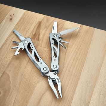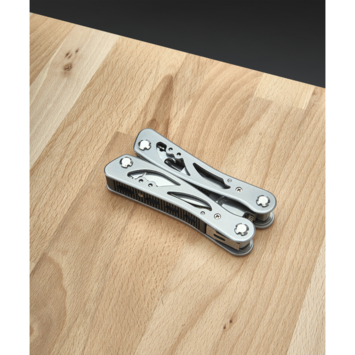 De multitool is gemaakt van roestvaststaal. Dit maakt de stevige multitool geschikt voor meerdere doeleinden. Het gereedschap heeft namelijk 12 verschillende functies. De multitool van suki is bijvoorbeeld te gebruiken als punttang, griptang of snijtang, maar ook als houtzaag, vijl, blik- en flesopener of priem. Daarnaast bevat het multifunctionele gereedschap 2 verschillende messen, 2 platte schroevendraaiers en een kruiskopschroevendraaier. In suki’s assortiment vindt u een handige messenhouder met riembevestiging waaraan u de multitool bevestigt, zodat u deze makkelijk meeneemt. De suki multitool is namelijk onmisbaar gereedschap voor thuis, maar ook voor onderweg.