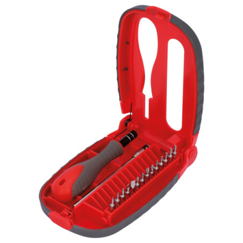 Deze suki preciesie-bitset bestaande uit een handgreep met magnetische bithouder, verlengstuk en de volgende bits gemaakt van Chroom Vanadiumstaal; SL 1,5 - 2,0 - 2,5 - 3,0 - 4,0 PH000 - 00 - 0 - 1, T5 - 6 - 7 - 8 - 9. Deze precisiebits hebben een opnamemaat van 4 mm.