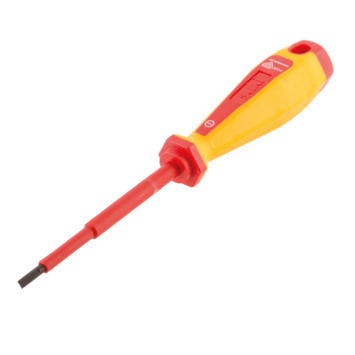 De suki schroevendraaier SL 5,5mm 1000V is geschikt voor schroeven met een sleufkop. De sleufkopschroevendraaier is daarnaast geïsoleerd en veilig te gebruiken tot 1000V. U gebruikt de schroevendraaier met sleufkop dan ook voor schroefwerkzaamheden aan elektrische installaties. Deze geïsoleerde schroevendraaier heeft een bledbreedte van 5,5mm en een stiftlengte van 125mm. KARWEI heeft de VDE-schroevendraaier tot 1000V tevens in andere maten en soorten. De schroevendraaier met platte kop is voorzien van een ergonomische handgreep, zodat u goed grip heeft tijdens het schroeven van sleufkopschroeven. Kortom, met de SL-schroevendraaier van 5,5mm klust u veilig aan elektrische installaties tot 1000V.