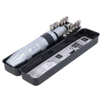 Met de suki slagschroevendraaier slaat u schroeven die stevig vastzitten makkelijk los. U plaatst de slagschroevendraaier in de schroef en geeft met een hamer een slag op de achterzijde. Een speciaal mechanisme waarvan deze schroevendraaier is voorzien, zorgt vervolgens voor een automatische, krachtige draaibeweging. Zo slaat u er schroeven mee los met een SL 5-6-8-9mm, PH 1-2-2-3-4, of zeskante inbus aandrijving van 4-5-6 of 8mm. Kortom, vastzittende schroeven verwijdert u eenvoudig met deze slagschroevendraaier voor Phillips-kruiskopschroeven, inbusschroeven en schroeven met een sleufkop.